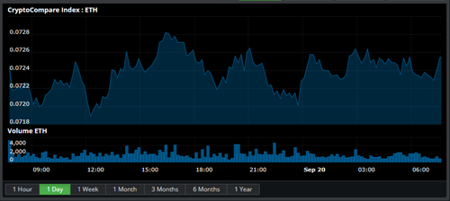 State of the CryptoBitcoin is up 1.18% at $3,965.320 with a volume of $100.4k - $396.7M on the USD pairs. Litecoin is up 0.72% against the dollar for the day at $52.9 and down 0.3% to Ƀ0.01338 on volumes of Ƀ8.0k. Ether is up 0.57% against Bitcoin at Ƀ0.07258 per Ether and up 1.8% against the dollar to $286.81 with average volume Ƀ18.5k on the ETH/BTC pair. Dash is down 0.27% at Ƀ0.08208 with Ƀ3.7k volume and up 0.89% against the dollar at $322.92. Ripple is down 0.61% to Ƀ0.00004713 with volumes of Ƀ2.8k and up 0.27% against the dollar at $0.186. Zcash is up 0.53% for the day to Ƀ0.04767 per ZEC and up 1.62% against the dollar to $188.45 with an average volume of Ƀ1.8k for the 24 hour period. Monero is down 0.59% against the dollar at $95.97 and down 1.26% against Bitcoin at Ƀ0.02433 on volumes of Ƀ4.3k. Ether Classic is down 1.02% to Ƀ0.002913 with volumes of Ƀ1.2k and up 0.79% against the dollar at $11.52. Waves is up 0.19% to Ƀ0.001040 on Ƀ1.2k volume. Stratis is down 3.88% to Ƀ0.001244 on Ƀ1.3k volume. |