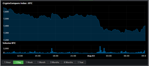 State of the CryptoBitcoin is down 2.84% at $7,409.140 with a volume of Ƀ68.4k - $512.0M on the USD pairs. Ether is up 0.75% against Bitcoin at Ƀ0.05526 per Ether and down 2.13% against the dollar to $408.85 with average volume Ƀ48.9k on the ETH/BTC pair. Bitcoin Cash is down 2.32% to Ƀ0.09653 with volumes of Ƀ19.1k and down 5.08% against the dollar at $714.4. Ripple is up 3.2% to Ƀ0.00005966 with volumes of Ƀ11.0k and down 0.02% against the dollar at $0.4408. Zcash is down 4.12% for the day to Ƀ0.02442 per ZEC and down 6.73% against the dollar to $182.55 with an average volume of Ƀ5.5k for the 24 hour period. Litecoin is down 1.74% against the dollar for the day at $75.84 and up 1.38% to Ƀ0.01025 on volumes of Ƀ13.6k. Dash is up 0.21% at Ƀ0.02805 with Ƀ3.6k volume and down 3.31% against the dollar at $206.93. Iota is up 0.67% to Ƀ0.0001202 on Ƀ3.3k volume. Ether Classic is down 0.35% to Ƀ0.001976 with volumes of Ƀ7.1k and down 3.38% against the dollar at $14.59. Monero is down 6.96% against the dollar at $117.81 and down 3.92% against Bitcoin at Ƀ0.01593 on volumes of Ƀ2.0k. Neo is down 2.89% for the day to Ƀ0.0037 per NEO and down 5.65% against the dollar to $27.39 with an average volume of Ƀ2.7k for the 24 hour period. Waves is down 16.47% to Ƀ0.0002475 on Ƀ2.1k volume. Stratis is down 10.07% to Ƀ0.000276 on Ƀ467.434 volume. Cardano is down 2.17% to Ƀ0.00001759 on Ƀ2.7k volume. NEM is down 4.2% to Ƀ0.00001986 on Ƀ454.279 volume. EOS is up 3.94% to Ƀ0.0009602 on Ƀ14.3k volume. Tron is down 4.01% to Ƀ0.00000407 on Ƀ8.7k volume. Stellar is down 6.14% to Ƀ0.00003396 on Ƀ4.3k volume. |