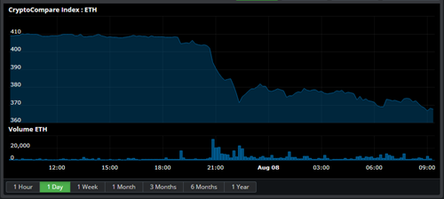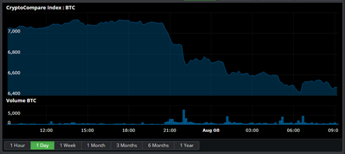 State of the CryptoBitcoin is down 8.35% at $6,453.560 with a volume of Ƀ106.1k - $719.9M on the USD pairs. Ether is down 2.17% against Bitcoin at Ƀ0.05686 per Ether and down 10.46% against the dollar to $366.51 with average volume Ƀ55.6k on the ETH/BTC pair. Bitcoin Cash is down 7.04% to Ƀ0.09352 with volumes of Ƀ18.5k and down 14.72% against the dollar at $604.08. Ripple is down 8.39% to Ƀ0.00005338 with volumes of Ƀ9.7k and down 15.88% against the dollar at $0.3449. Zcash is up 0.27% for the day to Ƀ0.02637 per ZEC and down 8.2% against the dollar to $169.91 with an average volume of Ƀ5.4k for the 24 hour period. Litecoin is down 12.81% against the dollar for the day at $65.08 and down 5% to Ƀ0.01008 on volumes of Ƀ16.1k. Dash is down 1.57% at Ƀ0.02828 with Ƀ4.6k volume and down 9.43% against the dollar at $182.84. Iota is down 8.64% to Ƀ0.0001047 on Ƀ2.3k volume. Ether Classic is down 7.97% to Ƀ0.002459 with volumes of Ƀ24.7k and down 15.53% against the dollar at $15.88. Monero is down 11.64% against the dollar at $101.53 and down 3.32% against Bitcoin at Ƀ0.01574 on volumes of Ƀ2.5k. Neo is down 6.03% for the day to Ƀ0.003566 per NEO and down 14.04% against the dollar to $22.95 with an average volume of Ƀ3.8k for the 24 hour period. Waves is down 0.8% to Ƀ0.0002595 on Ƀ674.759 volume. Stratis is down 5.91% to Ƀ0.0002659 on Ƀ304.238 volume. Cardano is down 3.11% to Ƀ0.00001777 on Ƀ2.2k volume. NEM is down 4.78% to Ƀ0.00001931 on Ƀ569.733 volume. EOS is down 8.43% to Ƀ0.0009203 on Ƀ23.0k volume. Tron is down 7.71% to Ƀ0.00000383 on Ƀ7.0k volume. Stellar is down 3.14% to Ƀ0.00003296 on Ƀ4.5k volume. |
