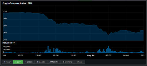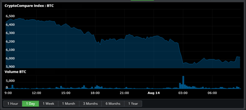 State of the CryptoBitcoin is down 6.35% at $6,034.890 with a volume of Ƀ106.8k - $661.1M on the USD pairs. Ether is down 9.45% against Bitcoin at Ƀ0.04466 per Ether and down 15.09% against the dollar to $269.33 with average volume Ƀ76.1k on the ETH/BTC pair. Bitcoin Cash is down 8.1% to Ƀ0.08263 with volumes of Ƀ15.9k and down 13.95% against the dollar at $498.18. Ripple is down 6.91% to Ƀ0.00004381 with volumes of Ƀ9.7k and down 12.75% against the dollar at $0.2642. Zcash is down 11.32% for the day to Ƀ0.02202 per ZEC and down 17% against the dollar to $132.8 with an average volume of Ƀ5.8k for the 24 hour period. Litecoin is down 13.59% against the dollar for the day at $51.64 and down 7.64% to Ƀ0.008561 on volumes of Ƀ13.1k. Dash is down 11.19% at Ƀ0.02302 with Ƀ4.7k volume and down 16.55% against the dollar at $138.93. Iota is down 16.88% to Ƀ0.00007023 on Ƀ1.9k volume. Ether Classic is down 12.03% to Ƀ0.001813 with volumes of Ƀ15.6k and down 17.37% against the dollar at $10.94. Monero is down 10.54% against the dollar at $85.16 and down 4.46% against Bitcoin at Ƀ0.01413 on volumes of Ƀ3.5k. Neo is down 13.36% for the day to Ƀ0.00251 per NEO and down 19.03% against the dollar to $15.15 with an average volume of Ƀ5.0k for the 24 hour period. Waves is down 9.74% to Ƀ0.0003002 on Ƀ1.0k volume. Stratis is down 19.99% to Ƀ0.0002001 on Ƀ455.282 volume. Cardano is down 12.82% to Ƀ0.00001517 on Ƀ3.6k volume. NEM is down 1.35% to Ƀ0.00001676 on Ƀ714.085 volume. EOS is down 7.13% to Ƀ0.0007291 on Ƀ15.6k volume. Tron is down 15.23% to Ƀ0.00000295 on Ƀ8.5k volume. Stellar is down 3.43% to Ƀ0.00003494 on Ƀ8.5k volume. |
