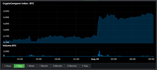 State of the CryptoBitcoin is up 3.33% at $6,937.170 with a volume of Ƀ63.0k - $430.0M on the USD pairs. Ether is down 0% against Bitcoin at Ƀ0.04121 per Ether and up 3.38% against the dollar to $285.65 with average volume Ƀ49.2k on the ETH/BTC pair. Bitcoin Cash is up 0.93% to Ƀ0.07931 with volumes of Ƀ15.4k and up 4.37% against the dollar at $549.81. Ripple is up 1.77% to Ƀ0.0000499 with volumes of Ƀ8.4k and up 5.33% against the dollar at $0.3458. Zcash is up 7.95% for the day to Ƀ0.02186 per ZEC and up 12.18% against the dollar to $152.44 with an average volume of Ƀ4.8k for the 24 hour period. Litecoin is up 5.24% against the dollar for the day at $60.48 and up 1.83% to Ƀ0.008723 on volumes of Ƀ10.2k. Dash is up 18.1% at Ƀ0.02558 with Ƀ11.2k volume and up 21.85% against the dollar at $177.08. Iota is up 12.58% to Ƀ0.0001029 on Ƀ3.4k volume. Ether Classic is down 1.4% to Ƀ0.001836 with volumes of Ƀ9.2k and up 2% against the dollar at $12.73. Monero is up 10.41% against the dollar at $105.18 and up 6.62% against Bitcoin at Ƀ0.01515 on volumes of Ƀ2.4k. Neo is up 9.22% for the day to Ƀ0.002938 per NEO and up 13.21% against the dollar to $20.4 with an average volume of Ƀ9.5k for the 24 hour period. Waves is down 0.64% to Ƀ0.0003264 on Ƀ303.918 volume. Stratis is down 0.45% to Ƀ0.0002429 on Ƀ181.823 volume. Cardano is up 3.68% to Ƀ0.00001465 on Ƀ2.8k volume. NEM is up 1.22% to Ƀ0.00001573 on Ƀ503.177 volume. EOS is up 1.2% to Ƀ0.0007743 on Ƀ21.1k volume. Tron is up 6.12% to Ƀ0.00000364 on Ƀ5.5k volume. Stellar is up 0.98% to Ƀ0.00003282 on Ƀ2.7k volume. |