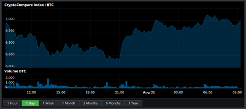 State of the CryptoBitcoin is up 0.5% at $6,992.130 with a volume of Ƀ58.1k - $403.3M on the USD pairs. Ether is down 0.67% against Bitcoin at Ƀ0.04014 per Ether and down 0.04% against the dollar to $280.16 with average volume Ƀ48.9k on the ETH/BTC pair. Bitcoin Cash is down 0.5% to Ƀ0.07718 with volumes of Ƀ15.0k and up 0.15% against the dollar at $538.27. Ripple is up 0.34% to Ƀ0.00004765 with volumes of Ƀ6.8k and up 0.7% against the dollar at $0.3321. Zcash is up 1.1% for the day to Ƀ0.02111 per ZEC and up 1.44% against the dollar to $147.11 with an average volume of Ƀ3.1k for the 24 hour period. Litecoin is up 0.73% against the dollar for the day at $60.41 and up 0.21% to Ƀ0.008647 on volumes of Ƀ10.6k. Dash is up 3.83% at Ƀ0.02713 with Ƀ10.5k volume and up 4.68% against the dollar at $189.32. Iota is up 6.6% to Ƀ0.0001034 on Ƀ2.3k volume. Ether Classic is up 0.06% to Ƀ0.001818 with volumes of Ƀ6.5k and up 0.48% against the dollar at $12.67. Monero is up 8.03% against the dollar at $108.47 and up 7.69% against Bitcoin at Ƀ0.01555 on volumes of Ƀ3.2k. Neo is up 3.63% for the day to Ƀ0.002824 per NEO and up 4.71% against the dollar to $19.77 with an average volume of Ƀ7.4k for the 24 hour period. Waves is down 1.52% to Ƀ0.0002973 on Ƀ490.783 volume. Stratis is up 2.82% to Ƀ0.0002264 on Ƀ137.095 volume. Cardano is down 0.9% to Ƀ0.00001432 on Ƀ1.9k volume. NEM is down 0.47% to Ƀ0.00001476 on Ƀ600.77 volume. EOS is up 5.29% to Ƀ0.0008821 on Ƀ24.0k volume. Tron is up 3.76% to Ƀ0.00000359 on Ƀ3.5k volume. Stellar is up 0.41% to Ƀ0.00003148 on Ƀ2.7k volume. |