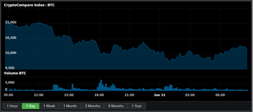 State of the CryptoBitcoin is down 8.07% at $10,191.250 with a volume of Ƀ194.7k - $1994.2M on the USD pairs. Ether is up 1.04% against Bitcoin at Ƀ0.107 per Ether and down 7.37% against the dollar to $1084.63 with average volume Ƀ60.5k on the ETH/BTC pair. Bitcoin Cash is down 1.21% to Ƀ0.1465 with volumes of Ƀ25.6k and down 9.19% against the dollar at $1490.59. Ripple is down 1.98% to Ƀ0.0001089 with volumes of Ƀ18.1k and down 9.76% against the dollar at $1.11. Zcash is down 4.15% for the day to Ƀ0.03787 per ZEC and down 11.51% against the dollar to $388.66 with an average volume of Ƀ4.0k for the 24 hour period. Litecoin is down 7.48% against the dollar for the day at $164.24 and up 0.68% to Ƀ0.01617 on volumes of Ƀ10.5k. Dash is down 1.66% at Ƀ0.06737 with Ƀ5.1k volume and down 9.77% against the dollar at $688.43. Iota is up 0.72% to Ƀ0.0002246 on Ƀ2.3k volume. Ether Classic is down 2.24% to Ƀ0.002703 with volumes of Ƀ7.2k and down 9.72% against the dollar at $27.67. Monero is down 8.6% against the dollar at $279.13 and down 0.58% against Bitcoin at Ƀ0.02738 on volumes of Ƀ4.3k. Neo is down 0.71% for the day to Ƀ0.01396 per NEO and down 9.63% against the dollar to $142.03 with an average volume of Ƀ10.0k for the 24 hour period. Waves is down 4.43% to Ƀ0.0007548 on Ƀ2.5k volume. Stratis is down 6.58% to Ƀ0.001206 on Ƀ1.4k volume. |
