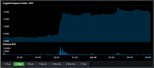 State of the CryptoBitcoin is up 9.69% at $7,378.850 with a volume of Ƀ123.7k - $895.6M on the USD pairs. Ether is down 3.69% against Bitcoin at Ƀ0.06787 per Ether and up 5.42% against the dollar to $500.4 with average volume Ƀ88.8k on the ETH/BTC pair. Bitcoin Cash is down 1.76% to Ƀ0.1169 with volumes of Ƀ19.6k and up 7.99% against the dollar at $860.48. Ripple is down 2% to Ƀ0.00006943 with volumes of Ƀ10.8k and up 7.26% against the dollar at $0.5114. Zcash is up 6.42% for the day to Ƀ0.02916 per ZEC and up 17.09% against the dollar to $216.31 with an average volume of Ƀ7.1k for the 24 hour period. Litecoin is up 8.28% against the dollar for the day at $89.97 and down 1.13% to Ƀ0.01222 on volumes of Ƀ18.2k. Dash is down 3.8% at Ƀ0.0357 with Ƀ4.6k volume and up 5.54% against the dollar at $262.94. Iota is down 4.49% to Ƀ0.000153 on Ƀ2.0k volume. Ether Classic is down 4.86% to Ƀ0.002426 with volumes of Ƀ10.6k and up 4.5% against the dollar at $17.89. Monero is up 5.34% against the dollar at $145.44 and down 4.08% against Bitcoin at Ƀ0.01973 on volumes of Ƀ3.1k. Neo is down 2.47% for the day to Ƀ0.00534 per NEO and up 7.28% against the dollar to $39.37 with an average volume of Ƀ5.1k for the 24 hour period. Waves is down 2.31% to Ƀ0.0004223 on Ƀ1.9k volume. Stratis is up 10.54% to Ƀ0.0004403 on Ƀ1.3k volume. Cardano is up 5.19% to Ƀ0.00002411 on Ƀ6.5k volume. NEM is up 2.11% to Ƀ0.00002666 on Ƀ968.068 volume. EOS is up 0.93% to Ƀ0.001194 on Ƀ17.6k volume. Tron is down 2.01% to Ƀ0.00000536 on Ƀ8.5k volume. Stellar is up 10.29% to Ƀ0.00003826 on Ƀ3.8k volume. |
