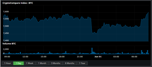 State of the CryptoBitcoin is up 0.32% at $7,593.910 with a volume of Ƀ57.2k - $432.0M on the USD pairs. Ether is up 1.65% against Bitcoin at Ƀ0.07706 per Ether and up 1.99% against the dollar to $583.81 with average volume Ƀ36.3k on the ETH/BTC pair. Bitcoin Cash is down 1.63% to Ƀ0.1328 with volumes of Ƀ26.4k and down 1.38% against the dollar at $1006.44. Ripple is up 0.62% to Ƀ0.00008139 with volumes of Ƀ7.8k and up 0.7% against the dollar at $0.6167. Zcash is down 1.37% for the day to Ƀ0.03162 per ZEC and down 1.14% against the dollar to $240.3 with an average volume of Ƀ2.6k for the 24 hour period. Litecoin is down 0.68% against the dollar for the day at $119.35 and down 0.76% to Ƀ0.01577 on volumes of Ƀ12.0k. Dash is down 0.92% at Ƀ0.0408 with Ƀ4.6k volume and down 0.74% against the dollar at $309.35. Iota is up 8.41% to Ƀ0.0002436 on Ƀ5.0k volume. Ether Classic is down 0.59% to Ƀ0.002023 with volumes of Ƀ4.9k and down 0.65% against the dollar at $15.31. Monero is down 1.27% against the dollar at $155.86 and down 1.68% against Bitcoin at Ƀ0.02054 on volumes of Ƀ3.2k. Neo is up 1.95% for the day to Ƀ0.007179 per NEO and up 2.05% against the dollar to $54.37 with an average volume of Ƀ2.2k for the 24 hour period. Waves is up 0.35% to Ƀ0.0005496 on Ƀ3.0k volume. Stratis is down 1.21% to Ƀ0.0005878 on Ƀ507.09 volume. Cardano is up 4.41% to Ƀ0.00002962 on Ƀ6.7k volume. NEM is up 5.26% to Ƀ0.00003405 on Ƀ915.045 volume. EOS is down 0.74% to Ƀ0.001619 on Ƀ31.1k volume. Tron is down 1.99% to Ƀ0.00000787 on Ƀ12.3k volume. Stellar is up 2.7% to Ƀ0.00003882 on Ƀ5.4k volume. |
