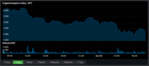 State of the CryptoBitcoin is down 2.01% at $7,444.040 with a volume of Ƀ53.3k - $401.9M on the USD pairs. Ether is down 1.31% against Bitcoin at Ƀ0.07892 per Ether and down 3.41% against the dollar to $586.85 with average volume Ƀ41.8k on the ETH/BTC pair. Bitcoin Cash is down 4.19% to Ƀ0.144 with volumes of Ƀ25.3k and down 6.3% against the dollar at $1070.24. Ripple is up 0.49% to Ƀ0.00008777 with volumes of Ƀ9.7k and down 1.38% against the dollar at $0.6527. Zcash is down 4.67% for the day to Ƀ0.03104 per ZEC and down 6.68% against the dollar to $231.21 with an average volume of Ƀ3.6k for the 24 hour period. Litecoin is down 3.89% against the dollar for the day at $117.45 and down 1.99% to Ƀ0.01578 on volumes of Ƀ12.0k. Dash is down 1.23% at Ƀ0.0419 with Ƀ5.3k volume and down 2.82% against the dollar at $312.72. Iota is up 0.26% to Ƀ0.0002271 on Ƀ3.6k volume. Ether Classic is down 1.37% to Ƀ0.002016 with volumes of Ƀ4.9k and down 3.29% against the dollar at $14.99. Monero is down 3.27% against the dollar at $158.35 and down 1.3% against Bitcoin at Ƀ0.02126 on volumes of Ƀ3.6k. Neo is down 1.24% for the day to Ƀ0.007064 per NEO and down 3.04% against the dollar to $52.57 with an average volume of Ƀ3.0k for the 24 hour period. Waves is down 1.94% to Ƀ0.000545 on Ƀ2.6k volume. Stratis is down 3.06% to Ƀ0.0005764 on Ƀ706.928 volume. Cardano is down 2.43% to Ƀ0.0000277 on Ƀ4.4k volume. NEM is down 1.73% to Ƀ0.00003243 on Ƀ664.323 volume. EOS is down 4.12% to Ƀ0.001768 on Ƀ33.1k volume. Tron is down 1.28% to Ƀ0.00000774 on Ƀ10.0k volume. Stellar is down 2.68% to Ƀ0.00003818 on Ƀ3.4k volume. |
