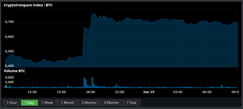 State of the CryptoBitcoin is up 3.49% at $6,702.300 with a volume of Ƀ62.5k - $416.1M on the USD pairs. Ether is up 0.77% against Bitcoin at Ƀ0.07743 per Ether and up 4.34% against the dollar to $518.88 with average volume Ƀ35.7k on the ETH/BTC pair. Bitcoin Cash is up 0.69% to Ƀ0.1312 with volumes of Ƀ18.0k and up 4.46% against the dollar at $878.57. Ripple is down 0.56% to Ƀ0.00008013 with volumes of Ƀ8.1k and up 2.93% against the dollar at $0.5369. Zcash is up 1.81% for the day to Ƀ0.02919 per ZEC and up 4.96% against the dollar to $195.28 with an average volume of Ƀ3.7k for the 24 hour period. Litecoin is up 2.79% against the dollar for the day at $97.6 and down 0.68% to Ƀ0.01457 on volumes of Ƀ13.2k. Dash is down 0.33% at Ƀ0.03942 with Ƀ10.9k volume and up 2.75% against the dollar at $264.22. Iota is down 2.51% to Ƀ0.0001745 on Ƀ3.1k volume. Ether Classic is up 4.56% to Ƀ0.002292 with volumes of Ƀ10.8k and up 8.47% against the dollar at $15.37. Monero is up 3.89% against the dollar at $127.66 and up 0.26% against Bitcoin at Ƀ0.01907 on volumes of Ƀ3.1k. Neo is up 0.22% for the day to Ƀ0.005849 per NEO and up 3.79% against the dollar to $39.12 with an average volume of Ƀ3.5k for the 24 hour period. Waves is up 0.94% to Ƀ0.0005359 on Ƀ2.5k volume. Stratis is up 1.43% to Ƀ0.0004736 on Ƀ601.527 volume. Cardano is down 1.43% to Ƀ0.00002421 on Ƀ2.1k volume. NEM is down 2.14% to Ƀ0.00002927 on Ƀ651.089 volume. EOS is down 2.37% to Ƀ0.001567 on Ƀ18.6k volume. Tron is up 3.39% to Ƀ0.00000671 on Ƀ7.6k volume. Stellar is down 1.4% to Ƀ0.00003454 on Ƀ2.1k volume. |