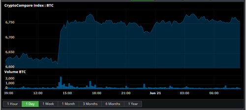 State of the CryptoBitcoin is up 1.87% at $6,760.000 with a volume of Ƀ49.3k - $333.3M on the USD pairs. Ether is up 1.14% against Bitcoin at Ƀ0.08006 per Ether and up 2.9% against the dollar to $539.84 with average volume Ƀ41.3k on the ETH/BTC pair. Bitcoin Cash is down 0.08% to Ƀ0.1321 with volumes of Ƀ755.8k and up 1.94% against the dollar at $892.47. Ripple is up 0.16% to Ƀ0.00008046 with volumes of Ƀ8.4k and up 2.14% against the dollar at $0.5436. Zcash is down 0.21% for the day to Ƀ0.02893 per ZEC and up 1.67% against the dollar to $195.28 with an average volume of Ƀ3.8k for the 24 hour period. Litecoin is up 1.5% against the dollar for the day at $97.94 and down 0.41% to Ƀ0.01449 on volumes of Ƀ14.0k. Dash is up 3.11% at Ƀ0.03974 with Ƀ4.3k volume and up 4.84% against the dollar at $267.98. Iota is up 0.12% to Ƀ0.0001723 on Ƀ2.4k volume. Ether Classic is up 10.55% to Ƀ0.002535 with volumes of Ƀ17.5k and up 12.67% against the dollar at $17.16. Monero is up 1.18% against the dollar at $123.62 and down 0.65% against Bitcoin at Ƀ0.0183 on volumes of Ƀ3.4k. Neo is up 0.23% for the day to Ƀ0.005783 per NEO and up 2.17% against the dollar to $39.07 with an average volume of Ƀ3.5k for the 24 hour period. Waves is up 5.48% to Ƀ0.0005463 on Ƀ2.6k volume. Stratis is down 0.95% to Ƀ0.0004507 on Ƀ519.14 volume. Cardano is down 1.12% to Ƀ0.00002385 on Ƀ1.8k volume. NEM is down 1.61% to Ƀ0.00002872 on Ƀ753.267 volume. EOS is up 0.13% to Ƀ0.001573 on Ƀ21.7k volume. Tron is up 0.55% to Ƀ0.0000073 on Ƀ10.4k volume. Stellar is up 0.7% to Ƀ0.00003453 on Ƀ3.4k volume. |
