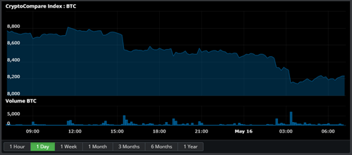 State of the CryptoBitcoin is down 5.89% at $8,230.050 with a volume of Ƀ96.6k - $822.1M on the USD pairs. Ether is down 0.71% against Bitcoin at Ƀ0.08337 per Ether and down 6.47% against the dollar to $685.76 with average volume Ƀ42.2k on the ETH/BTC pair. Bitcoin Cash is down 6.68% to Ƀ0.1522 with volumes of Ƀ31.3k and down 12.07% against the dollar at $1252.31. Ripple is down 3.15% to Ƀ0.00008228 with volumes of Ƀ10.5k and down 8.67% against the dollar at $0.6772. Zcash is up 1.39% for the day to Ƀ0.04147 per ZEC and down 4.74% against the dollar to $339.59 with an average volume of Ƀ17.4k for the 24 hour period. Litecoin is down 7.55% against the dollar for the day at $136.36 and down 2.01% to Ƀ0.01655 on volumes of Ƀ14.4k. Dash is down 3.84% at Ƀ0.04886 with Ƀ5.1k volume and down 9.36% against the dollar at $402.17. Iota is up 1.11% to Ƀ0.0002277 on Ƀ3.0k volume. Ether Classic is down 6.35% to Ƀ0.002094 with volumes of Ƀ9.5k and down 11.83% against the dollar at $17.22. Monero is down 10.23% against the dollar at $194.76 and down 4.2% against Bitcoin at Ƀ0.02373 on volumes of Ƀ4.6k. Neo is down 5.42% for the day to Ƀ0.007438 per NEO and down 10.94% against the dollar to $61.24 with an average volume of Ƀ3.7k for the 24 hour period. Waves is down 8.05% to Ƀ0.0007106 on Ƀ3.1k volume. Stratis is down 5.42% to Ƀ0.0006887 on Ƀ928.632 volume. Cardano is down 5.49% to Ƀ0.00002962 on Ƀ3.9k volume. NEM is down 7.4% to Ƀ0.0000388 on Ƀ1.3k volume. EOS is down 7.94% to Ƀ0.001496 on Ƀ27.5k volume. Tron is down 4.25% to Ƀ0.00000788 on Ƀ13.0k volume. Stellar is down 4.76% to Ƀ0.0000402 on Ƀ2.1k volume. |