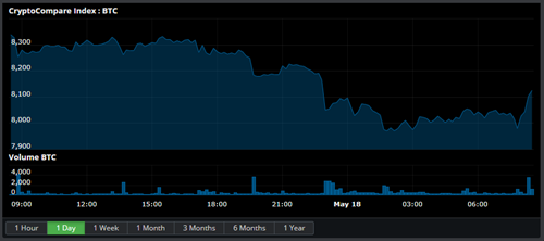State of the CryptoBitcoin is down 1.64% at $8,120.860 with a volume of Ƀ76.7k - $626.0M on the USD pairs. Ether is down 1.15% against Bitcoin at Ƀ0.08365 per Ether and down 2.84% against the dollar to $678.42 with average volume Ƀ37.6k on the ETH/BTC pair. Bitcoin Cash is down 4.37% to Ƀ0.1488 with volumes of Ƀ25.2k and down 6.07% against the dollar at $1206.05. Ripple is down 1.27% to Ƀ0.00008246 with volumes of Ƀ8.4k and down 2.82% against the dollar at $0.6697. Zcash is down 0.14% for the day to Ƀ0.04272 per ZEC and down 1.7% against the dollar to $346.88 with an average volume of Ƀ9.1k for the 24 hour period. Litecoin is down 3.45% against the dollar for the day at $132.56 and down 1.98% to Ƀ0.01631 on volumes of Ƀ11.2k. Dash is down 5.43% at Ƀ0.04671 with Ƀ5.8k volume and down 6.85% against the dollar at $379.5. Iota is down 7.57% to Ƀ0.0002125 on Ƀ2.4k volume. Ether Classic is down 0.84% to Ƀ0.002128 with volumes of Ƀ6.7k and down 2.26% against the dollar at $17.28. Monero is down 4.97% against the dollar at $189.24 and down 3.6% against Bitcoin at Ƀ0.02331 on volumes of Ƀ4.3k. Neo is down 1.45% for the day to Ƀ0.007252 per NEO and down 2.79% against the dollar to $58.93 with an average volume of Ƀ3.6k for the 24 hour period. Waves is down 4.21% to Ƀ0.0007007 on Ƀ3.0k volume. Stratis is down 1.59% to Ƀ0.0007178 on Ƀ769.23 volume. Cardano is down 2.1% to Ƀ0.00002943 on Ƀ3.2k volume. NEM is down 5.01% to Ƀ0.00003695 on Ƀ738.108 volume. EOS is down 1.14% to Ƀ0.001562 on Ƀ25.6k volume. Tron is down 1.19% to Ƀ0.00000827 on Ƀ10.8k volume. Stellar is down 3.83% to Ƀ0.00003814 on Ƀ1.6k volume. |