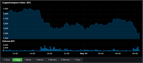 State of the CryptoBitcoin is down 5.53% at $7,424.640 with a volume of Ƀ124.1k - $949.3M on the USD pairs. Ether is down 1.64% against Bitcoin at Ƀ0.07732 per Ether and down 6.86% against the dollar to $573.73 with average volume Ƀ47.5k on the ETH/BTC pair. Bitcoin Cash is down 0.97% to Ƀ0.1323 with volumes of Ƀ24.8k and down 6.29% against the dollar at $983.22. Ripple is up 2.78% to Ƀ0.0000796 with volumes of Ƀ10.0k and down 2.78% against the dollar at $0.5907. Zcash is down 4.65% for the day to Ƀ0.03728 per ZEC and down 9.85% against the dollar to $277.39 with an average volume of Ƀ5.2k for the 24 hour period. Litecoin is down 6.15% against the dollar for the day at $117.06 and down 1.26% to Ƀ0.01571 on volumes of Ƀ14.2k. Dash is up 2.04% at Ƀ0.04492 with Ƀ5.4k volume and down 3.31% against the dollar at $334.62. Iota is down 0.47% to Ƀ0.0001925 on Ƀ2.6k volume. Ether Classic is up 0.76% to Ƀ0.001991 with volumes of Ƀ6.7k and down 4.84% against the dollar at $14.73. Monero is down 5.85% against the dollar at $163.89 and down 0% against Bitcoin at Ƀ0.02209 on volumes of Ƀ4.2k. Neo is down 0.97% for the day to Ƀ0.006929 per NEO and down 6.11% against the dollar to $51.45 with an average volume of Ƀ4.1k for the 24 hour period. Waves is down 3.1% to Ƀ0.0006038 on Ƀ2.2k volume. Stratis is up 1.63% to Ƀ0.0007302 on Ƀ2.6k volume. Cardano is down 0% to Ƀ0.00002631 on Ƀ4.0k volume. NEM is up 0.44% to Ƀ0.00003448 on Ƀ920.298 volume. EOS is down 1.31% to Ƀ0.001429 on Ƀ26.6k volume. Tron is up 2.56% to Ƀ0.00000922 on Ƀ23.3k volume. Stellar is up 4.07% to Ƀ0.00003706 on Ƀ2.2k volume.
