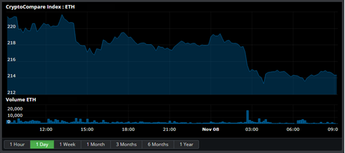 State of the CryptoBitcoin is down 0.79% at $6,491.830 with a volume of Ƀ46.0k - $299.8M on the USD pairs. Ether is down 2.19% against Bitcoin at Ƀ0.03303 per Ether and down 3.13% against the dollar to $214.36 with average volume Ƀ39.0k on the ETH/BTC pair. Bitcoin Cash is down 5.22% to Ƀ0.09156 with volumes of Ƀ46.8k and down 6.01% against the dollar at $595.04. Ripple is down 3.45% to Ƀ0.00007889 with volumes of Ƀ26.7k and down 4.33% against the dollar at $0.5128. Zcash is down 0.6% for the day to Ƀ0.01983 per ZEC and down 1.53% against the dollar to $128.61 with an average volume of Ƀ4.7k for the 24 hour period. Litecoin is down 3.18% against the dollar for the day at $53.34 and down 2.41% to Ƀ0.00822 on volumes of Ƀ13.6k. Dash is up 3.07% at Ƀ0.02621 with Ƀ14.6k volume and up 2.23% against the dollar at $170.78. Iota is down 2.16% to Ƀ0.00007599 on Ƀ487.846 volume. Ether Classic is down 0.2% to Ƀ0.001464 with volumes of Ƀ10.0k and down 2.05% against the dollar at $9.54. Monero is down 1.44% against the dollar at $111.22 and down 0.58% against Bitcoin at Ƀ0.01703 on volumes of Ƀ1.6k. Neo is down 1.94% for the day to Ƀ0.002528 per NEO and down 2.54% against the dollar to $16.53 with an average volume of Ƀ11.6k for the 24 hour period. Waves is down 0.32% to Ƀ0.0002817 on Ƀ594.832 volume. Stratis is down 0.82% to Ƀ0.0002415 on Ƀ157.982 volume. Cardano is down 1.73% to Ƀ0.00001194 on Ƀ1.6k volume. NEM is down 3.15% to Ƀ0.00001447 on Ƀ464.674 volume. EOS is down 1.98% to Ƀ0.0008545 on Ƀ19.3k volume. Tron is down 2.16% to Ƀ0.00000362 on Ƀ1.5k volume. Stellar is down 1.56% to Ƀ0.00003907 on Ƀ3.4k volume. |