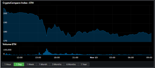 State of the CryptoBitcoin is down 10.88% at $5,633.260 with a volume of Ƀ210.6k - $1218.8M on the USD pairs. Ether is down 1.09% against Bitcoin at Ƀ0.03163 per Ether and down 11.68% against the dollar to $178.5 with average volume Ƀ74.9k on the ETH/BTC pair. Bitcoin Cash is up 2.66% to Ƀ0.07904 with volumes of Ƀ63.6k and down 7.86% against the dollar at $449.2. Ripple is up 3.51% to Ƀ0.00008133 with volumes of Ƀ38.3k and down 7.52% against the dollar at $0.4622. Zcash is down 2.52% for the day to Ƀ0.01937 per ZEC and down 13.17% against the dollar to $110.24 with an average volume of Ƀ7.7k for the 24 hour period. Litecoin is down 13.16% against the dollar for the day at $42.63 and down 2.47% to Ƀ0.007597 on volumes of Ƀ25.9k. Dash is down 2.75% at Ƀ0.02472 with Ƀ11.8k volume and down 13.16% against the dollar at $141.43. Iota is down 5.2% to Ƀ0.00007271 on Ƀ1.4k volume. Ether Classic is down 4.97% to Ƀ0.001357 with volumes of Ƀ25.0k and down 15.27% against the dollar at $7.71. Monero is down 14.13% against the dollar at $89.63 and down 3.73% against Bitcoin at Ƀ0.01575 on volumes of Ƀ3.2k. Neo is down 2.16% for the day to Ƀ0.002308 per NEO and down 12.87% against the dollar to $13.2 with an average volume of Ƀ14.7k for the 24 hour period. Waves is down 0.63% to Ƀ0.0002671 on Ƀ876.433 volume. Stratis is down 8.35% to Ƀ0.000192 on Ƀ504.981 volume. Cardano is down 3.29% to Ƀ0.00001089 on Ƀ4.1k volume. NEM is up 0.24% to Ƀ0.00001657 on Ƀ2.1k volume. EOS is down 0.94% to Ƀ0.0008048 on Ƀ35.8k volume. Tron is down 2.92% to Ƀ0.00000332 on Ƀ4.7k volume. Stellar is up 3.82% to Ƀ0.00004103 on Ƀ6.2k volume. |