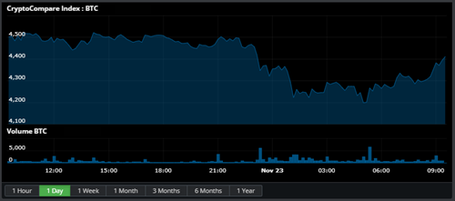 State of the CryptoBitcoin is down 1.86% at $4,411.420 with a volume of Ƀ121.1k - $528.0M on the USD pairs. Ether is down 2.78% against Bitcoin at Ƀ0.02863 per Ether and down 4.43% against the dollar to $126.33 with average volume Ƀ67.4k on the ETH/BTC pair. Bitcoin Cash is down 15.46% to Ƀ0.04315 with volumes of Ƀ4.3k and down 6.9% against the dollar at $244.69. Ripple is down 1.24% to Ƀ0.0000957 with volumes of Ƀ30.2k and down 3.09% against the dollar at $0.4229. Zcash is down 2.46% for the day to Ƀ0.01781 per ZEC and down 4.63% against the dollar to $78.6 with an average volume of Ƀ8.5k for the 24 hour period. Litecoin is down 2.45% against the dollar for the day at $33.02 and down 0.45% to Ƀ0.007529 on volumes of Ƀ16.0k. Dash is down 4.57% at Ƀ0.02318 with Ƀ18.6k volume and down 6.8% against the dollar at $103.01. Iota is up 1.59% to Ƀ0.00007166 on Ƀ491.209 volume. Ether Classic is down 6% to Ƀ0.001174 with volumes of Ƀ7.4k and down 7.62% against the dollar at $5.21. Monero is down 2.77% against the dollar at $66.71 and down 0.86% against Bitcoin at Ƀ0.01503 on volumes of Ƀ1.7k. Neo is down 2.33% for the day to Ƀ0.001929 per NEO and down 3.9% against the dollar to $8.63 with an average volume of Ƀ12.9k for the 24 hour period. Waves is up 0.31% to Ƀ0.0002557 on Ƀ802.882 volume. Stratis is down 2.68% to Ƀ0.0001776 on Ƀ214.17 volume. Cardano is down 1.76% to Ƀ0.00001003 on Ƀ1.4k volume. NEM is down 2.08% to Ƀ0.0000179 on Ƀ889.712 volume. EOS is down 0.22% to Ƀ0.000827 on Ƀ33.0k volume. Tron is down 0.63% to Ƀ0.00000315 on Ƀ1.9k volume. Stellar is down 1.18% to Ƀ0.00004284 on Ƀ4.2k volume. |