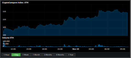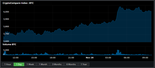 State of the CryptoBitcoin is up 7.77% at $4,017.260 with a volume of Ƀ143.5k - $552.3M on the USD pairs. Ether is up 1.75% against Bitcoin at Ƀ0.02848 per Ether and up 9.96% against the dollar to $114.74 with average volume Ƀ80.3k on the ETH/BTC pair. Bitcoin Cash is down 2.91% to Ƀ0.0481 with volumes of Ƀ3.1k and up 9.31% against the dollar at $201.56. Ripple is down 1.05% to Ƀ0.00009291 with volumes of Ƀ26.9k and up 6.71% against the dollar at $0.3753. Zcash is up 5.35% for the day to Ƀ0.0185 per ZEC and up 13.52% against the dollar to $74.63 with an average volume of Ƀ13.9k for the 24 hour period. Litecoin is up 10.46% against the dollar for the day at $32.62 and up 2.58% to Ƀ0.008144 on volumes of Ƀ22.4k. Dash is down 0.39% at Ƀ0.02322 with Ƀ16.0k volume and up 7.17% against the dollar at $94.58. Iota is down 0.1% to Ƀ0.00007056 on Ƀ670.129 volume. Ether Classic is up 2.87% to Ƀ0.001182 with volumes of Ƀ10.4k and up 10.9% against the dollar at $4.78. Monero is up 11.25% against the dollar at $59.44 and up 3.23% against Bitcoin at Ƀ0.01471 on volumes of Ƀ2.4k. Neo is up 2.1% for the day to Ƀ0.001898 per NEO and up 10.53% against the dollar to $7.77 with an average volume of Ƀ14.0k for the 24 hour period. Waves is up 2.08% to Ƀ0.0002647 on Ƀ677.992 volume. Stratis is up 1.96% to Ƀ0.0001767 on Ƀ226.643 volume. Cardano is up 1.61% to Ƀ0.00000948 on Ƀ1.5k volume. NEM is up 0.46% to Ƀ0.00001964 on Ƀ1.8k volume. EOS is down 1.73% to Ƀ0.0007719 on Ƀ40.9k volume. Tron is up 1.3% to Ƀ0.00000311 on Ƀ1.9k volume. Stellar is up 0.16% to Ƀ0.00003758 on Ƀ3.8k volume. |