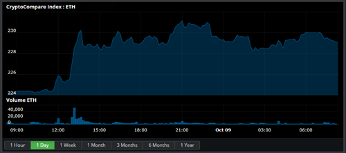 State of the CryptoBitcoin is up 0.83% at $6,637.830 with a volume of Ƀ43.5k - $289.3M on the USD pairs. Ether is up 1.26% against Bitcoin at Ƀ0.03452 per Ether and up 2.11% against the dollar to $229.12 with average volume Ƀ42.2k on the ETH/BTC pair. Bitcoin Cash is up 0.15% to Ƀ0.07901 with volumes of Ƀ20.6k and up 0.98% against the dollar at $524.34. Ripple is down 0.5% to Ƀ0.00007292 with volumes of Ƀ14.1k and up 0.33% against the dollar at $0.4841. Zcash is up 1.74% for the day to Ƀ0.01925 per ZEC and up 2.54% against the dollar to $127.83 with an average volume of Ƀ5.8k for the 24 hour period. Litecoin is up 2.23% against the dollar for the day at $59.03 and up 1.46% to Ƀ0.008908 on volumes of Ƀ10.3k. Dash is up 0.26% at Ƀ0.0274 with Ƀ7.9k volume and up 0.88% against the dollar at $181.78. Iota is up 1.2% to Ƀ0.00008903 on Ƀ1.3k volume. Ether Classic is up 0.12% to Ƀ0.001647 with volumes of Ƀ10.9k and up 0.64% against the dollar at $10.97. Monero is up 0.83% against the dollar at $114.38 and up 0.06% against Bitcoin at Ƀ0.01718 on volumes of Ƀ1.1k. Neo is up 0.44% for the day to Ƀ0.002761 per NEO and up 1.49% against the dollar to $18.38 with an average volume of Ƀ11.1k for the 24 hour period. Waves is up 3.58% to Ƀ0.0003331 on Ƀ798.745 volume. Stratis is up 2.03% to Ƀ0.0002313 on Ƀ121.999 volume. Cardano is up 1.96% to Ƀ0.000013 on Ƀ2.8k volume. NEM is up 0.68% to Ƀ0.00001626 on Ƀ375.357 volume. EOS is up 2.31% to Ƀ0.0008905 on Ƀ13.8k volume. Tron is down 6.01% to Ƀ0.00000391 on Ƀ10.6k volume. Stellar is up 0.73% to Ƀ0.00003706 on Ƀ2.0k volume. |