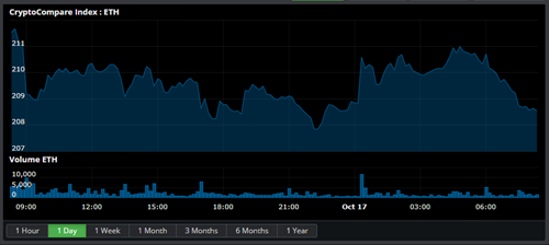 State of the CryptoBitcoin is down 0.56% at $6,546.190 with a volume of Ƀ41.2k - $270.4M on the USD pairs. Ether is up 0.13% against Bitcoin at Ƀ0.03174 per Ether and down 0.49% against the dollar to $208.63 with average volume Ƀ35.7k on the ETH/BTC pair. Bitcoin Cash is down 1.11% to Ƀ0.06927 with volumes of Ƀ18.4k and down 1.65% against the dollar at $455.04. Ripple is up 4% to Ƀ0.00007225 with volumes of Ƀ18.7k and up 2.9% against the dollar at $0.4785. Zcash is up 3.06% for the day to Ƀ0.01752 per ZEC and up 1.88% against the dollar to $117.39 with an average volume of Ƀ3.9k for the 24 hour period. Litecoin is down 2.36% against the dollar for the day at $53.4 and down 1.86% to Ƀ0.008195 on volumes of Ƀ11.1k. Dash is down 0.2% at Ƀ0.02482 with Ƀ5.1k volume and down 1.01% against the dollar at $165.92. Iota is down 0% to Ƀ0.00007586 on Ƀ955.635 volume. Ether Classic is down 1.47% to Ƀ0.001479 with volumes of Ƀ9.4k and down 1.02% against the dollar at $9.66. Monero is down 0.72% against the dollar at $108.19 and down 0.06% against Bitcoin at Ƀ0.01622 on volumes of Ƀ1.2k. Neo is up 2.74% for the day to Ƀ0.002516 per NEO and up 1.86% against the dollar to $16.98 with an average volume of Ƀ10.3k for the 24 hour period. Waves is up 0.39% to Ƀ0.0003085 on Ƀ627.864 volume. Stratis is down 1.95% to Ƀ0.0002162 on Ƀ123.973 volume. Cardano is up 1.58% to Ƀ0.0000116 on Ƀ1.4k volume. NEM is up 0.14% to Ƀ0.00001458 on Ƀ364.226 volume. EOS is up 0.05% to Ƀ0.0008241 on Ƀ11.5k volume. Tron is down 0.8% to Ƀ0.0000037 on Ƀ4.8k volume. Stellar is up 4.25% to Ƀ0.0000356 on Ƀ1.6k volume. |