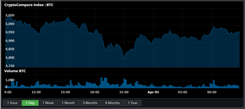 State of the CryptoBitcoin is down 1.54% at $4,960.400 with a volume of Ƀ65.2k - $322.2M on the USD pairs. Ether is up 1.98% against Bitcoin at Ƀ0.03294 per Ether and up 0.37% against the dollar to $163.66 with average volume Ƀ165.7k on the ETH/BTC pair. Litecoin is down 0.92% against the dollar for the day at $87.31 and up 0.86% to Ƀ0.01761 on volumes of Ƀ157.6k. EOS is up 1.63% to Ƀ0.001057 on Ƀ93.0k volume. Ripple is up 6.57% to Ƀ0.00007272 with volumes of Ƀ54.3k and up 4.73% against the dollar at $0.3607. Bitcoin Cash is down 5.46% to Ƀ0.05745 with volumes of Ƀ47.6k and down 6.99% against the dollar at $285.15. Neo is up 1.13% for the day to Ƀ0.002605 per NEO and up 0.23% against the dollar to $13.06 with an average volume of Ƀ21.0k for the 24 hour period. Tron is up 4.38% to Ƀ0.00000548 on Ƀ15.5k volume. Ether Classic is up 4.7% to Ƀ0.001158 with volumes of Ƀ15.3k and up 3.23% against the dollar at $5.76. Dash is down 1.38% at Ƀ0.02567 with Ƀ13.3k volume and down 2.29% against the dollar at $127.95. Zcash is up 0.5% for the day to Ƀ0.01406 per ZEC and down 1.05% against the dollar to $69.91 with an average volume of Ƀ11.8k for the 24 hour period. Cardano is down 1.37% to Ƀ0.00001805 on Ƀ9.5k volume. Stellar is up 2.73% to Ƀ0.00002522 on Ƀ8.1k volume. Monero is down 0.14% against the dollar at $66.19 and up 0.76% against Bitcoin at Ƀ0.01322 on volumes of Ƀ5.2k. Iota is up 0.97% to Ƀ0.00006955 on Ƀ1.4k volume. Waves is down 0.14% to Ƀ0.0005791 on Ƀ1.3k volume. NEM is up 0.72% to Ƀ0.00001408 on Ƀ1.1k volume. Stratis is up 3.3% to Ƀ0.0002314 on Ƀ589.562 volume. |