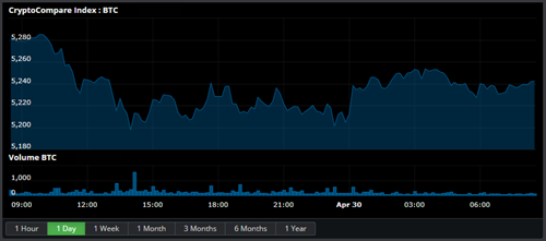 State of the CryptoBitcoin is down 0.35% at $5,243.640 with a volume of Ƀ31.8k - $166.5M on the USD pairs. Ether is up 1.34% against Bitcoin at Ƀ0.03019 per Ether and up 1.01% against the dollar to $159.75 with average volume Ƀ123.6k on the ETH/BTC pair. Litecoin is up 0.01% against the dollar for the day at $69.4 and up 0.3% to Ƀ0.01323 on volumes of Ƀ72.2k. EOS is down 2.16% to Ƀ0.0008746 on Ƀ46.7k volume. Bitcoin Cash is down 3.94% to Ƀ0.04604 with volumes of Ƀ46.5k and down 4.15% against the dollar at $242.74. Ripple is down 0.21% to Ƀ0.00005625 with volumes of Ƀ22.6k and down 0.6% against the dollar at $0.2967. Neo is up 1.52% for the day to Ƀ0.001804 per NEO and up 0.82% against the dollar to $9.86 with an average volume of Ƀ10.5k for the 24 hour period. Ether Classic is up 1.77% to Ƀ0.001092 with volumes of Ƀ10.3k and up 1.42% against the dollar at $5.72. Tron is down 0.46% to Ƀ0.00000429 on Ƀ9.5k volume. Dash is down 0.43% at Ƀ0.02082 with Ƀ8.7k volume and down 1.04% against the dollar at $111.86. Zcash is down 2.56% for the day to Ƀ0.01106 per ZEC and down 3.28% against the dollar to $60.09 with an average volume of Ƀ7.3k for the 24 hour period. Stellar is down 1.97% to Ƀ0.00001837 on Ƀ6.1k volume. Iota is down 7.33% to Ƀ0.00005577 on Ƀ4.2k volume. Cardano is down 3.54% to Ƀ0.00001252 on Ƀ3.7k volume. Monero is up 0.53% against the dollar at $64.13 and up 0.86% against Bitcoin at Ƀ0.01173 on volumes of Ƀ2.7k. Waves is down 2.67% to Ƀ0.0003867 on Ƀ940.753 volume. NEM is down 3.87% to Ƀ0.00001044 on Ƀ451.885 volume. Stratis is down 4.64% to Ƀ0.0001561 on Ƀ275.474 volume. |