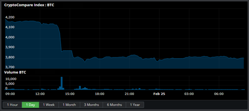 State of the CryptoBitcoin is down 8.63% at $3,805.880 with a volume of Ƀ90.0k - $348.9M on the USD pairs. Ether is down 7.59% against Bitcoin at Ƀ0.0363 per Ether and down 15.62% against the dollar to $138.67 with average volume Ƀ168.1k on the ETH/BTC pair. EOS is down 8.79% to Ƀ0.0009395 on Ƀ80.2k volume. Litecoin is down 14.55% against the dollar for the day at $44.65 and down 6.54% to Ƀ0.01171 on volumes of Ƀ57.2k. Ripple is down 2.58% to Ƀ0.00007923 with volumes of Ƀ34.8k and down 10.77% against the dollar at $0.3032. Bitcoin Cash is down 6.84% to Ƀ0.03458 with volumes of Ƀ31.4k and down 14.82% against the dollar at $131. Neo is down 3.54% for the day to Ƀ0.002398 per NEO and down 11.88% against the dollar to $9.27 with an average volume of Ƀ22.9k for the 24 hour period. Ether Classic is down 7.35% to Ƀ0.001097 with volumes of Ƀ12.7k and down 14.4% against the dollar at $4.28. Tron is down 1.41% to Ƀ0.0000063 on Ƀ12.4k volume. Zcash is down 2.67% for the day to Ƀ0.01348 per ZEC and down 10.69% against the dollar to $52.04 with an average volume of Ƀ10.2k for the 24 hour period. Dash is down 3.68% at Ƀ0.02145 with Ƀ8.8k volume and down 11.35% against the dollar at $82.92. Stellar is down 4.09% to Ƀ0.00002202 on Ƀ4.8k volume. Cardano is down 5.05% to Ƀ0.00001128 on Ƀ3.3k volume. Waves is up 1.5% to Ƀ0.0007092 on Ƀ3.3k volume. Monero is down 11.51% against the dollar at $48.9 and down 3.43% against Bitcoin at Ƀ0.01268 on volumes of Ƀ1.6k. NEM is down 5.03% to Ƀ0.00001115 on Ƀ707.717 volume. Iota is down 4.13% to Ƀ0.00007343 on Ƀ676.805 volume. Stratis is down 3.55% to Ƀ0.0002203 on Ƀ388.01 volume. |