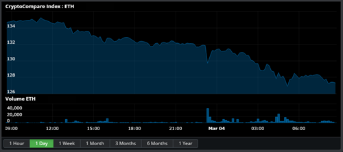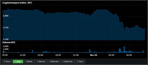 State of the CryptoBitcoin is down 2.2% at $3,749.470 with a volume of Ƀ28.5k - $108.2M on the USD pairs. Ether is down 3.06% against Bitcoin at Ƀ0.03392 per Ether and down 5.3% against the dollar to $127.28 with average volume Ƀ115.1k on the ETH/BTC pair. Litecoin is down 4.9% against the dollar for the day at $46.34 and down 2.45% to Ƀ0.01234 on volumes of Ƀ42.1k. EOS is down 5.31% to Ƀ0.000879 on Ƀ41.2k volume. Ripple is down 1.14% to Ƀ0.00008123 with volumes of Ƀ24.6k and down 3.45% against the dollar at $0.3055. Zcash is down 2.02% for the day to Ƀ0.0131 per ZEC and down 4.48% against the dollar to $49.7 with an average volume of Ƀ13.3k for the 24 hour period. Bitcoin Cash is down 3.28% to Ƀ0.03306 with volumes of Ƀ10.0k and down 5.42% against the dollar at $123.97. Ether Classic is down 0.09% to Ƀ0.001112 with volumes of Ƀ9.0k and down 2.52% against the dollar at $4.25. Dash is down 2.51% at Ƀ0.02097 with Ƀ8.8k volume and down 4.79% against the dollar at $79.76. Tron is down 3.69% to Ƀ0.00000575 on Ƀ6.4k volume. Neo is down 3.22% for the day to Ƀ0.002222 per NEO and down 5.79% against the dollar to $8.46 with an average volume of Ƀ6.0k for the 24 hour period. Stellar is up 1.42% to Ƀ0.00002215 on Ƀ5.8k volume. Waves is down 0.39% to Ƀ0.0006892 on Ƀ1.8k volume. Cardano is down 2.61% to Ƀ0.00001083 on Ƀ1.5k volume. Monero is down 2.9% against the dollar at $47.86 and down 0.55% against Bitcoin at Ƀ0.0126 on volumes of Ƀ1.3k. Stratis is down 2.64% to Ƀ0.0002212 on Ƀ538.969 volume. Iota is down 4.22% to Ƀ0.00007323 on Ƀ485.724 volume. NEM is down 2.34% to Ƀ0.00001086 on Ƀ454.241 volume. |