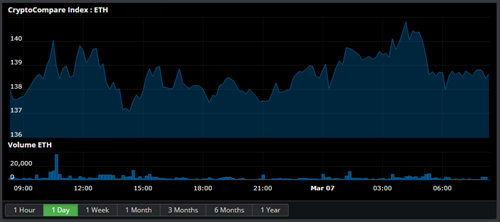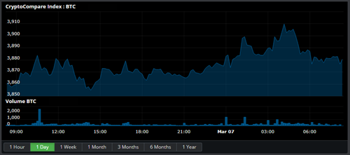 State of the CryptoBitcoin is up 0.63% at $3,877.630 with a volume of Ƀ36.9k - $143.2M on the USD pairs. Ether is up 0.08% against Bitcoin at Ƀ0.03553 per Ether and up 0.76% against the dollar to $138.61 with average volume Ƀ126.2k on the ETH/BTC pair. Litecoin is up 5.22% against the dollar for the day at $56.06 and up 4.73% to Ƀ0.01438 on volumes of Ƀ98.9k. EOS is up 1.23% to Ƀ0.0009687 on Ƀ54.7k volume. Ripple is up 0.23% to Ƀ0.00008133 with volumes of Ƀ21.8k and up 0.86% against the dollar at $0.3169. Zcash is down 0.54% for the day to Ƀ0.01289 per ZEC and up 0.08% against the dollar to $50.81 with an average volume of Ƀ13.0k for the 24 hour period. Dash is up 0.9% at Ƀ0.02128 with Ƀ9.8k volume and up 1.52% against the dollar at $83.72. Ether Classic is up 1.63% to Ƀ0.001122 with volumes of Ƀ8.4k and up 2.31% against the dollar at $4.43. Bitcoin Cash is down 0.24% to Ƀ0.03394 with volumes of Ƀ7.1k and up 0.31% against the dollar at $131.51. Tron is down 1.81% to Ƀ0.00000596 on Ƀ6.1k volume. Neo is up 0.4% for the day to Ƀ0.002258 per NEO and up 1.82% against the dollar to $8.95 with an average volume of Ƀ5.0k for the 24 hour period. Waves is down 3.61% to Ƀ0.0006568 on Ƀ2.2k volume. Stellar is down 0% to Ƀ0.00002189 on Ƀ1.9k volume. Cardano is up 0.27% to Ƀ0.000011 on Ƀ1.2k volume. Monero is up 2.1% against the dollar at $50.95 and up 1.49% against Bitcoin at Ƀ0.01292 on volumes of Ƀ1.2k. Iota is down 0.74% to Ƀ0.00007066 on Ƀ479.608 volume. Stratis is down 0.18% to Ƀ0.000218 on Ƀ281.445 volume. NEM is up 0.18% to Ƀ0.00001084 on Ƀ258.409 volume. |
