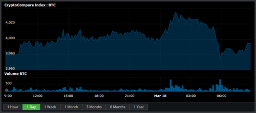 State of the CryptoBitcoin is up 0.31% at $3,996.340 with a volume of Ƀ21.7k - $86.8M on the USD pairs. Ether is down 0.72% against Bitcoin at Ƀ0.03465 per Ether and down 0.55% against the dollar to $139.1 with average volume Ƀ120.6k on the ETH/BTC pair. Litecoin is down 1.74% against the dollar for the day at $59.81 and down 2.11% to Ƀ0.01488 on volumes of Ƀ68.5k. Bitcoin Cash is up 5.54% to Ƀ0.0398 with volumes of Ƀ30.9k and up 5.86% against the dollar at $159.28. EOS is down 1.07% to Ƀ0.0009319 on Ƀ30.9k volume. Ether Classic is down 0.54% to Ƀ0.001101 with volumes of Ƀ30.7k and down 0.67% against the dollar at $4.42. Ripple is down 0.49% to Ƀ0.00007902 with volumes of Ƀ25.5k and down 0.22% against the dollar at $0.3171. Neo is down 2.23% for the day to Ƀ0.002282 per NEO and down 1.9% against the dollar to $9.29 with an average volume of Ƀ12.3k for the 24 hour period. Dash is up 2.41% at Ƀ0.02333 with Ƀ10.4k volume and up 3.15% against the dollar at $94.32. Monero is down 0.27% against the dollar at $52.25 and down 0.99% against Bitcoin at Ƀ0.013 on volumes of Ƀ8.3k. Stellar is up 0.48% to Ƀ0.00002701 on Ƀ6.9k volume. Tron is down 0.69% to Ƀ0.00000574 on Ƀ6.7k volume. Zcash is down 0% for the day to Ƀ0.01342 per ZEC and down 0.02% against the dollar to $54.39 with an average volume of Ƀ5.0k for the 24 hour period. Cardano is down 0.48% to Ƀ0.00001253 on Ƀ2.0k volume. Waves is down 0.42% to Ƀ0.0006839 on Ƀ1.2k volume. Iota is down 2.26% to Ƀ0.00007316 on Ƀ1.1k volume. NEM is up 0.24% to Ƀ0.00001236 on Ƀ564.533 volume. Stratis is down 0.17% to Ƀ0.0002373 on Ƀ309.831 volume. |