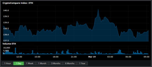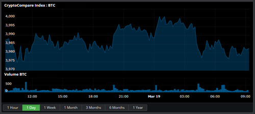 State of the CryptoBitcoin is up 0.14% at $3,982.370 with a volume of Ƀ23.8k - $94.8M on the USD pairs. Ether is down 0.32% against Bitcoin at Ƀ0.03457 per Ether and up 0.13% against the dollar to $138.43 with average volume Ƀ100.8k on the ETH/BTC pair. Litecoin is down 0.17% against the dollar for the day at $59.41 and down 0.47% to Ƀ0.0148 on volumes of Ƀ61.4k. Ether Classic is down 0% to Ƀ0.001099 with volumes of Ƀ45.0k and down 0% against the dollar at $4.4. EOS is down 0.43% to Ƀ0.0009284 on Ƀ38.6k volume. Bitcoin Cash is down 0.33% to Ƀ0.03973 with volumes of Ƀ27.5k and down 0.21% against the dollar at $159.24. Ripple is down 0.51% to Ƀ0.00007861 with volumes of Ƀ24.5k and down 0.32% against the dollar at $0.3137. Stellar is up 6.38% to Ƀ0.00002866 on Ƀ13.6k volume. Neo is down 1% for the day to Ƀ0.002268 per NEO and down 0.75% against the dollar to $9.21 with an average volume of Ƀ9.6k for the 24 hour period. Dash is down 1.8% at Ƀ0.02289 with Ƀ8.2k volume and down 1.7% against the dollar at $92.38. Zcash is up 3.74% for the day to Ƀ0.01386 per ZEC and up 4.15% against the dollar to $56.19 with an average volume of Ƀ6.3k for the 24 hour period. Tron is down 0.87% to Ƀ0.00000568 on Ƀ6.1k volume. Monero is up 0.68% against the dollar at $52.93 and up 1.16% against Bitcoin at Ƀ0.01313 on volumes of Ƀ3.3k. Cardano is down 0.08% to Ƀ0.00001246 on Ƀ1.8k volume. Waves is up 0.7% to Ƀ0.0006886 on Ƀ1.5k volume. Iota is up 1.79% to Ƀ0.00007431 on Ƀ893.114 volume. NEM is down 0.16% to Ƀ0.00001233 on Ƀ595.842 volume. Stratis is down 1.41% to Ƀ0.0002315 on Ƀ378.969 volume. |