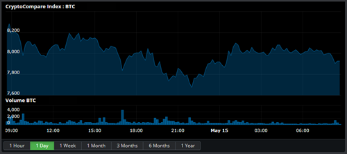 State of the CryptoBitcoin is down 4.32% at $7,933.380 with a volume of Ƀ106.4k - $848.9M on the USD pairs. Ether is up 11.34% against Bitcoin at Ƀ0.02876 per Ether and up 6.31% against the dollar to $227.91 with average volume Ƀ157.5k on the ETH/BTC pair. Litecoin is down 0.82% against the dollar for the day at $92.47 and up 3.73% to Ƀ0.01167 on volumes of Ƀ92.7k. Ripple is up 14.51% to Ƀ0.00005328 with volumes of Ƀ65.5k and up 8.11% against the dollar at $0.4211. EOS is up 3.48% to Ƀ0.00077 on Ƀ61.4k volume. Bitcoin Cash is down 2.14% to Ƀ0.04801 with volumes of Ƀ23.6k and down 6.66% against the dollar at $380.62. Neo is up 15.44% for the day to Ƀ0.001488 per NEO and up 11.66% against the dollar to $11.78 with an average volume of Ƀ17.2k for the 24 hour period. Zcash is up 7.62% for the day to Ƀ0.008855 per ZEC and up 3.12% against the dollar to $69.83 with an average volume of Ƀ15.6k for the 24 hour period. Tron is up 10.97% to Ƀ0.00000354 on Ƀ13.6k volume. Ether Classic is up 6.02% to Ƀ0.0008511 with volumes of Ƀ12.3k and up 1.95% against the dollar at $6.78. Dash is up 2.86% at Ƀ0.01761 with Ƀ9.5k volume and up 3.82% against the dollar at $146.07. Stellar is up 11.79% to Ƀ0.00001508 on Ƀ7.7k volume. Cardano is up 9.74% to Ƀ0.0000107 on Ƀ5.3k volume. Monero is up 1.99% against the dollar at $85.66 and up 6.57% against Bitcoin at Ƀ0.01087 on volumes of Ƀ2.4k. Waves is up 2.27% to Ƀ0.0002977 on Ƀ1.5k volume. Iota is up 10.16% to Ƀ0.00004977 on Ƀ1.2k volume. NEM is up 9.06% to Ƀ0.00000867 on Ƀ527.119 volume. Stratis is up 9.7% to Ƀ0.0001142 on Ƀ337.368 volume. |