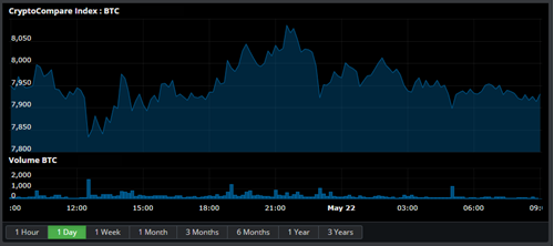 State of the CryptoBitcoin is down 0.05% at $7,940.310 with a volume of Ƀ40.6k - $323.2M on the USD pairs. Ether is up 1.92% against Bitcoin at Ƀ0.03241 per Ether and up 1.83% against the dollar to $257.49 with average volume Ƀ85.9k on the ETH/BTC pair. Litecoin is up 0.47% against the dollar for the day at $91.77 and up 0.52% to Ƀ0.01155 on volumes of Ƀ64.9k. EOS is up 0.67% to Ƀ0.000792 on Ƀ33.3k volume. Bitcoin Cash is up 0.48% to Ƀ0.05202 with volumes of Ƀ22.6k and up 0.47% against the dollar at $413.42. Ripple is up 1.41% to Ƀ0.00005051 with volumes of Ƀ22.4k and up 1.29% against the dollar at $0.4006. Tron is down 2.17% to Ƀ0.0000036 on Ƀ15.1k volume. Zcash is down 1.02% for the day to Ƀ0.009408 per ZEC and down 1.18% against the dollar to $74.41 with an average volume of Ƀ11.7k for the 24 hour period. Dash is up 0.67% at Ƀ0.02091 with Ƀ10.0k volume and up 0.53% against the dollar at $165.54. Ether Classic is down 0.3% to Ƀ0.0009315 with volumes of Ƀ9.1k and down 0.4% against the dollar at $7.4. Neo is up 1.46% for the day to Ƀ0.001529 per NEO and up 1.25% against the dollar to $12.12 with an average volume of Ƀ6.7k for the 24 hour period. Stellar is down 0.65% to Ƀ0.00001683 on Ƀ3.6k volume. Monero is down 2.54% against the dollar at $88.73 and down 2.1% against Bitcoin at Ƀ0.01119 on volumes of Ƀ3.0k. Cardano is down 0.28% to Ƀ0.00001065 on Ƀ2.8k volume. Waves is up 2% to Ƀ0.0003115 on Ƀ2.1k volume. NEM is down 3.36% to Ƀ0.00001094 on Ƀ738.892 volume. Stratis is up 3.49% to Ƀ0.0001186 on Ƀ267.361 volume. Iota is down 0% to Ƀ0.00005252039999999999 on Ƀ3.783 volume. |
