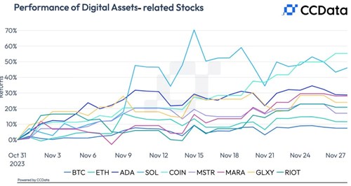- Coinbase Leads Crypto Stocks Rally With 55.3% Gain in November
